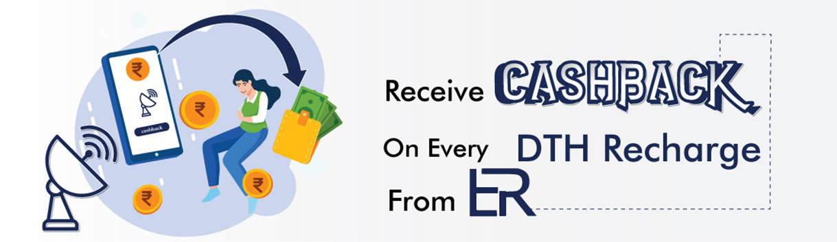 ER offers DTH recharge services Tata Sky, Videocon D2H, Airtel Digital TV, Dish TV, Sun Direct etc. You get cashback after your online DTH recharge procedure is completed.